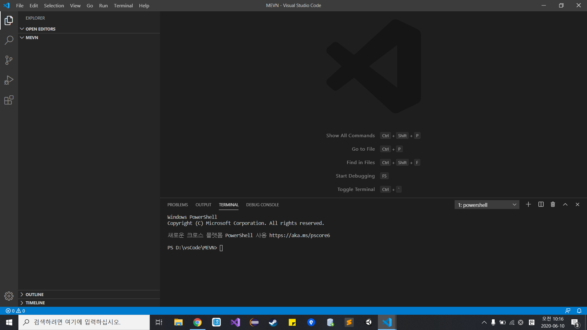그리고 원활한 진행을 위해 터미널을 열어야한다.