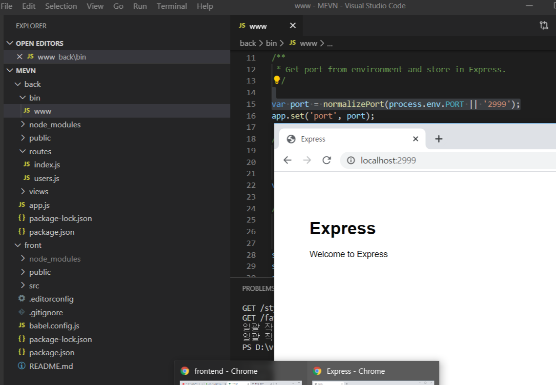 1. vsCode에 vue, express 프로젝트를 생성한다. - 현재 포스트