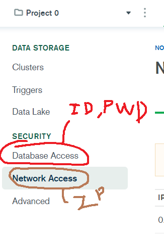 id는 저기서 만들 수 있다. Database Access에서 id, password를 입력해서 사용자를 만들고,