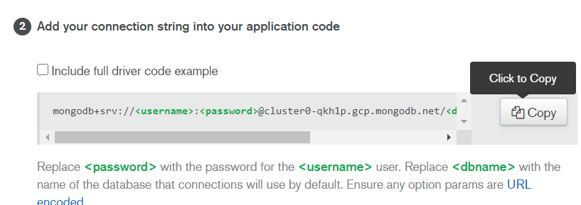 cluster - connect 들어가서 그냥 nextnext누르다가 이 부분에서 복사만 해주면 된다.