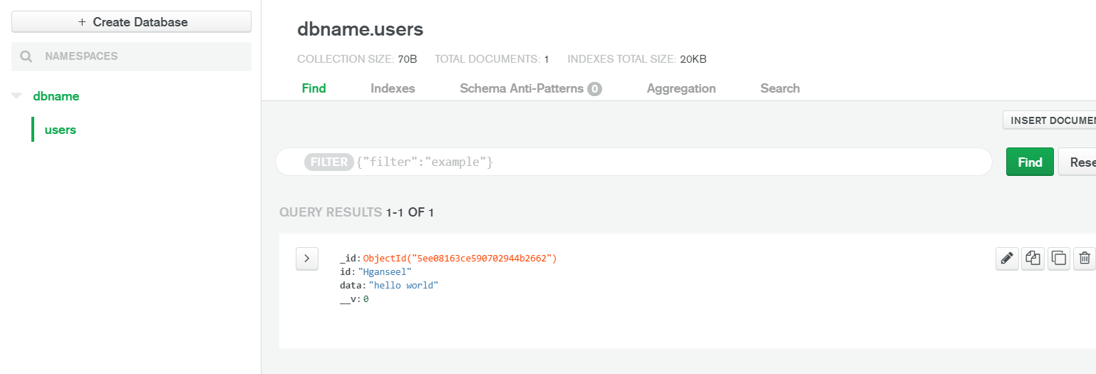 몽구스 DB에도 잘 들어갔다.