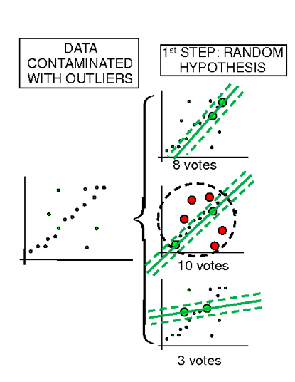 RANSAC은 RANdom SAmple consensus의 약자로, 데이터셋에서 노이즈를 제거하고 모델을 예측하는 알고리즘이다.