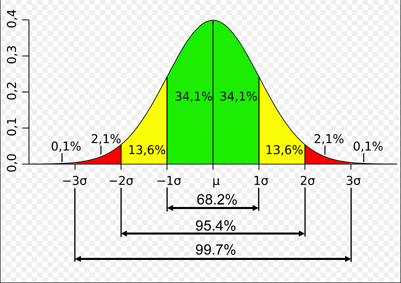 위 그래프로 설명하자면, 특정한 사건 P에서, x라는 값을 선택했을 때 x가 μ~1σ일 확률은 34.1%이고, 2σ~3σ일 확률은 2.1%인 것이라고 생각하면 쉽다.