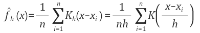 K는 위에서 본 kernel 함수이고, h는 커널함수의 bandwidth값으로 커널의 분산을 조절하는 파라미터이다.