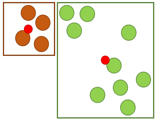 군집의 중앙이라는 의미로만 사용된다.)