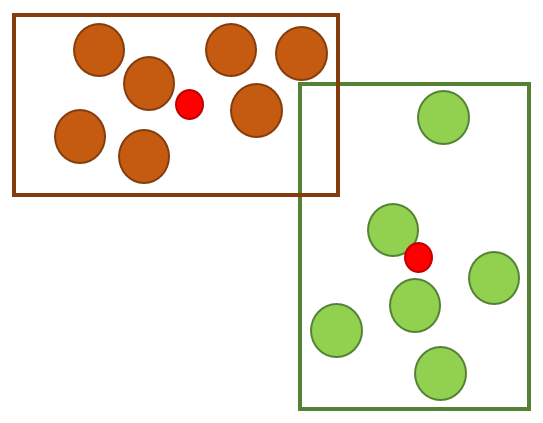 군집의 수가 정해지면 모든 point들 중 랜덤으로 군집의 중앙이 선정된다.